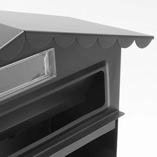 El Buzón Frida destaca por su robustez y durabilidad. Su acabado en negro mate le confiere un aspecto sofisticado y discreto, mientras que su tejadillo protege el correo de la lluvia y el sol. La ranura con tapa abatible proporciona una protección antirrobo adicional, garantizando la seguridad de tu correspondencia. Además, cuenta con una ventana de visualización que te permite comprobar si has recibido correo sin necesidad de abrir la puerta principal.