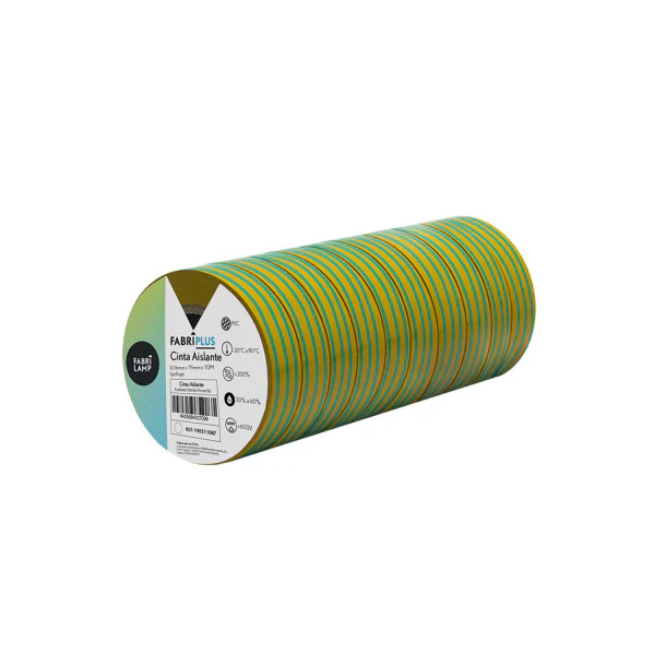 Descubre la Cinta Aislante PVC Verde/Amarillo 19mm x 10m de Fabrilamp/Abrila, la solución ideal para tus proyectos eléctricos. Esta cinta, fabricada con PVC de alta calidad, ofrece flexibilidad, durabilidad y resistencia a la intemperie, siendo perfecta tanto para interiores como exteriores. Su color verde/amarillo cumple con las normas de seguridad, identificando claramente las conexiones eléctricas. En luzguru.com te ofrecemos la mejor calidad al mejor precio. Con su excelente adherencia y elasticidad, garantiza un aislamiento seguro y eficiente hasta 600V. Ideal para electricistas profesionales y aficionados, esta cinta aislante es la elección perfecta para una amplia gama de aplicaciones, desde la instalación eléctrica hasta la reparación de cables y equipos electrónicos. ¡Asegura tus conexiones con la máxima fiabilidad y tranquilidad! Visita luzguru.com