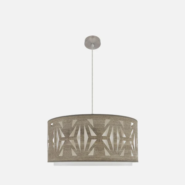 Colgante Katerina 3xE27: transforma cualquier espacio en un rincón acogedor y moderno con esta lámpara colgante de diseño innovador. Su pantalla calada en textil crea patrones de luz difusa que no solo iluminan, sino que decoran, ideal para comedores o salas de estar donde buscas calidez sin esfuerzo. Imagina cenas familiares bajo una luz suave que resalta cada detalle, o un rincón de trabajo iluminado con elegancia, resolviendo el problema de luces frías y aburridas. Con materiales premium como metal níquel y madera gris, ofrece durabilidad y estilo atemporal. Descubre la calidad de Abrila en LUZGURU, tu tienda de iluminación experta.