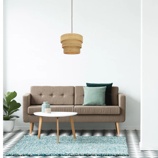 - Materiales Textil y Metal: Pantalla en textil madera clara combinada con armazón marrón duradero, proporcionando una estética natural y resistente que dura años sin perder encanto.