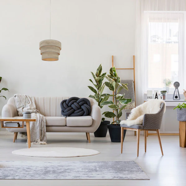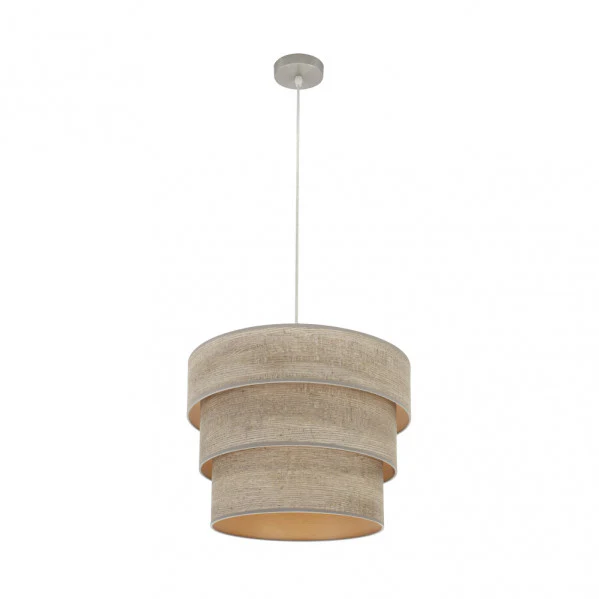 - Materiales Metal y Textil: Armazón en níquel duradero y pantalla textil en madera gris, combinan resistencia y calidez estética, facilitando una instalación limpia y un mantenimiento sencillo.
