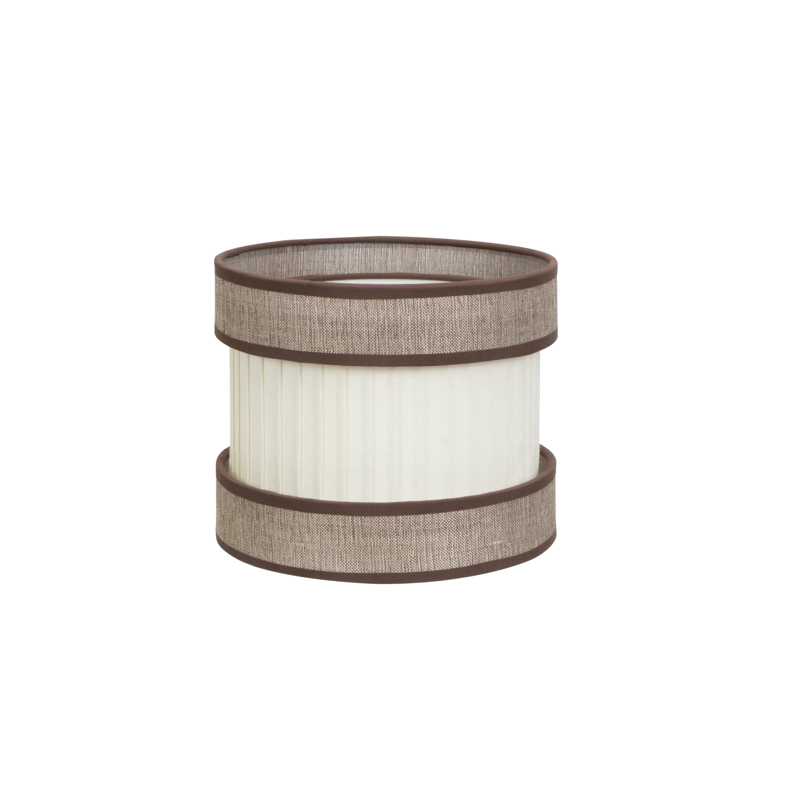 La pantalla está realizada en textil de alta calidad, asegurando durabilidad y un aspecto impecable con el paso del tiempo. Su diseño plisado en la pantalla central le da un toque único, mientras que las pantallas laterales de color marrón, ribeteadas en marrón oscuro, completan un diseño sofisticado y atractivo. Ideal para crear una iluminación difusa y general, perfecta para crear un ambiente relajante y acogedor en cualquier estancia.