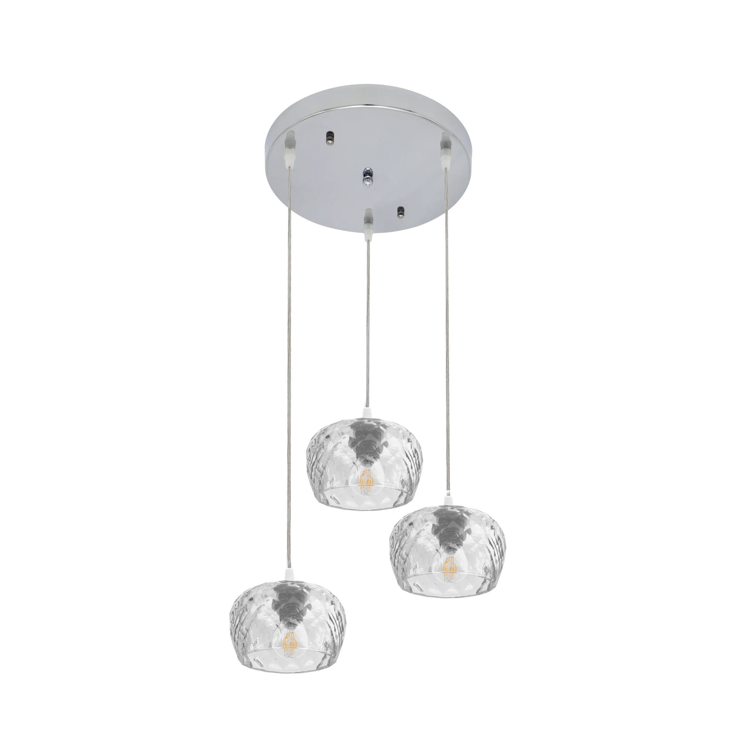 - Portalámparas 3xE27 en Cromo: Compatible con bombillas estándar, ofrece versatilidad para elegir la intensidad lumínica ideal, con un acabado metálico duradero y fácil mantenimiento.