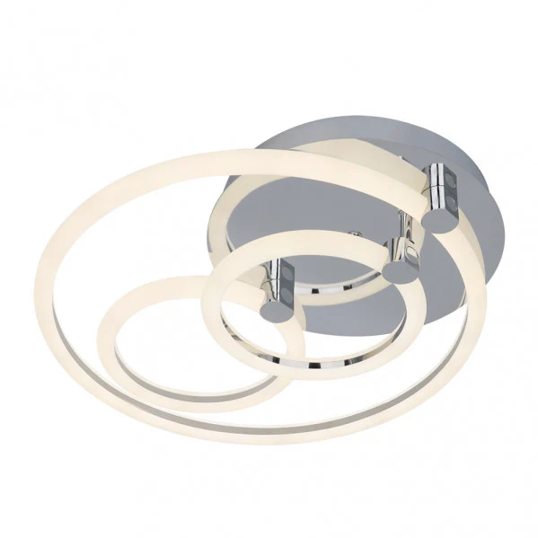 Plafon LED Alya de Abrila transforma cualquier espacio en un oasis de luz moderna y eficiente. Con su diseño innovador de tres círculos superpuestos en cromo brillante, no solo ilumina con 9180 lúmenes de potencia, sino que te permite personalizar la atmósfera exacta que deseas, desde cálida para relajarte en familia hasta fría y energizante para trabajar. Imagina llegar a casa y ajustar la intensidad y temperatura de luz con un simple mando a distancia, ahorrando energía sin sacrificar estilo ni comodidad. Este plafón regulable con memoria de color resuelve el problema de luces inadecuadas, ofreciendo iluminación difusa general para salones o dormitorios en menos de una instalación. Descubre la calidad premium de Abrila, disponible en LUZGURU para elevar tu decoración interior.