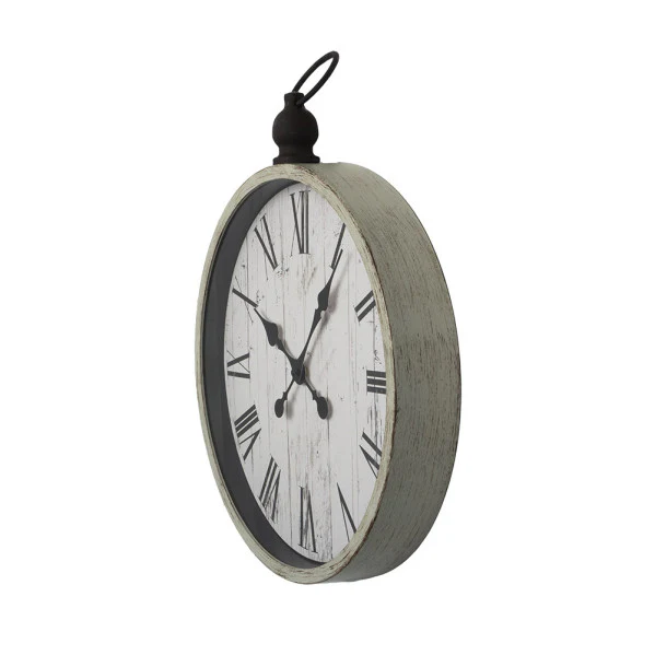 - Esfera de 37,5 cm de diámetro con números romanos y agujas retro.