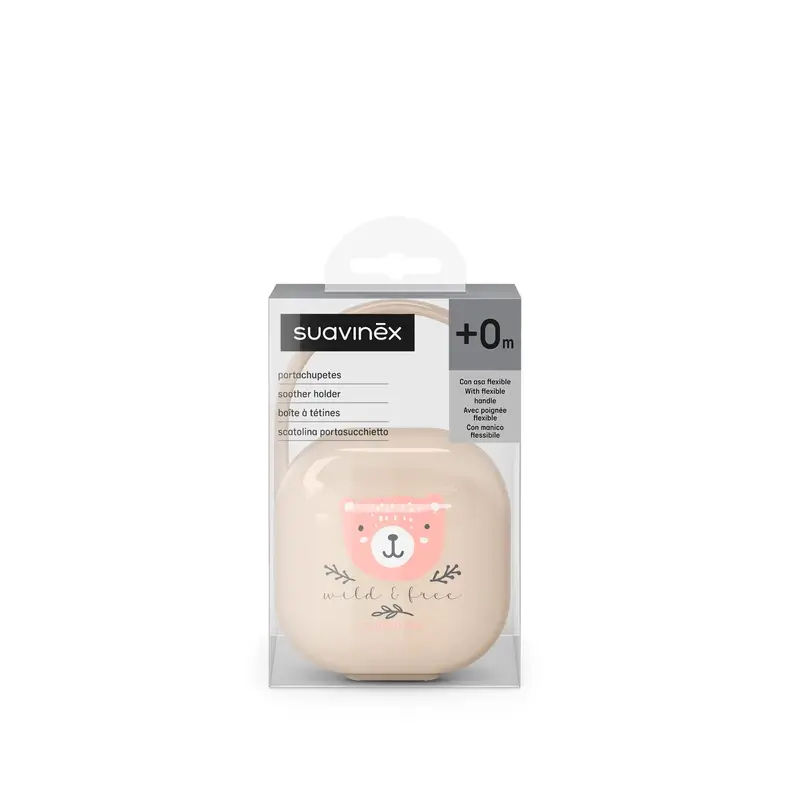 Portachupetes de Suavinex con capacidad para guardar hasta 2 chupetes. Caja para guardar los chupetes y accesorios como broches o tetinas hasta su próximo uso para evitar que se caigan al suelo y se ensucien o se pierdan. Gracias a su asa flexible podrás colgar esta funda para chupetes del carrito, del bolso o de la cuna. Esta funda para guardar chupetes está hecha de plástico duro y resistente, por lo que es fácil de limpiar. Cuenta con un cierre seguro que evita que los chupetes puedan perderse. Este estuche para chupetes es parte de la nueva colección Suavinex Birdies y Wild&Free y se puede combinar con otros chupetes, biberones y broches de la colección.