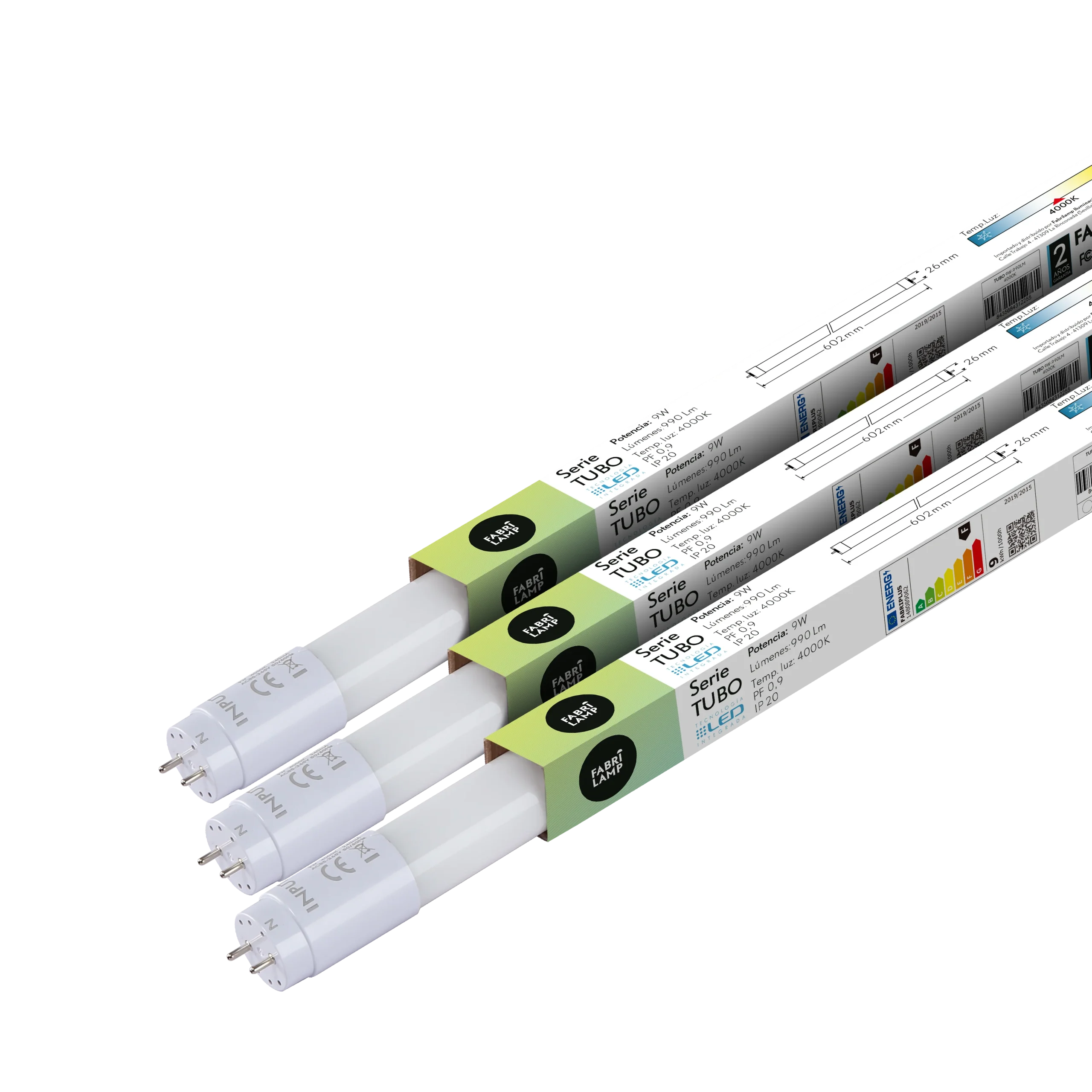 - Tubo LED T8 9w 900lm 4000k Fabriplus (se vende en cajas de 25 unidades)