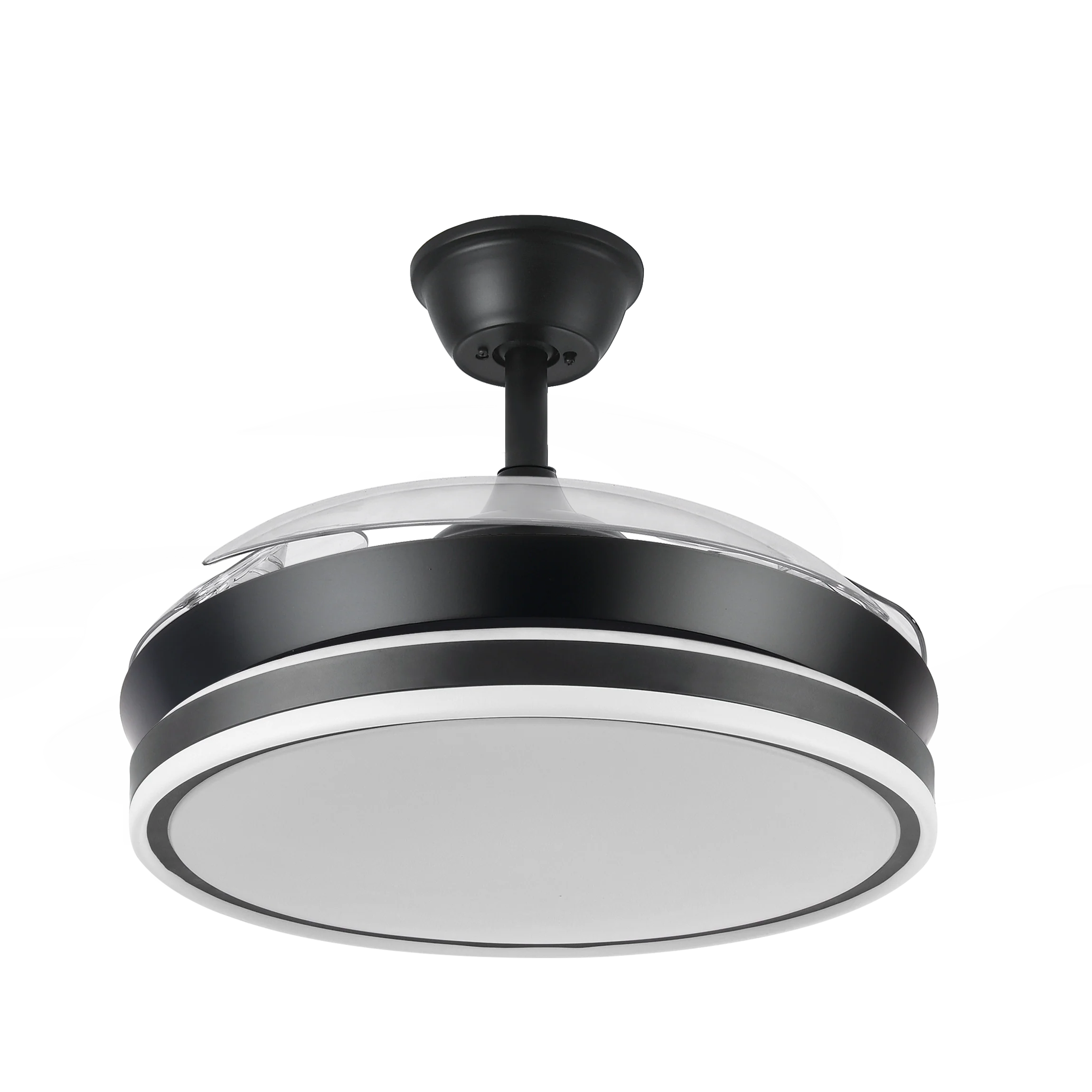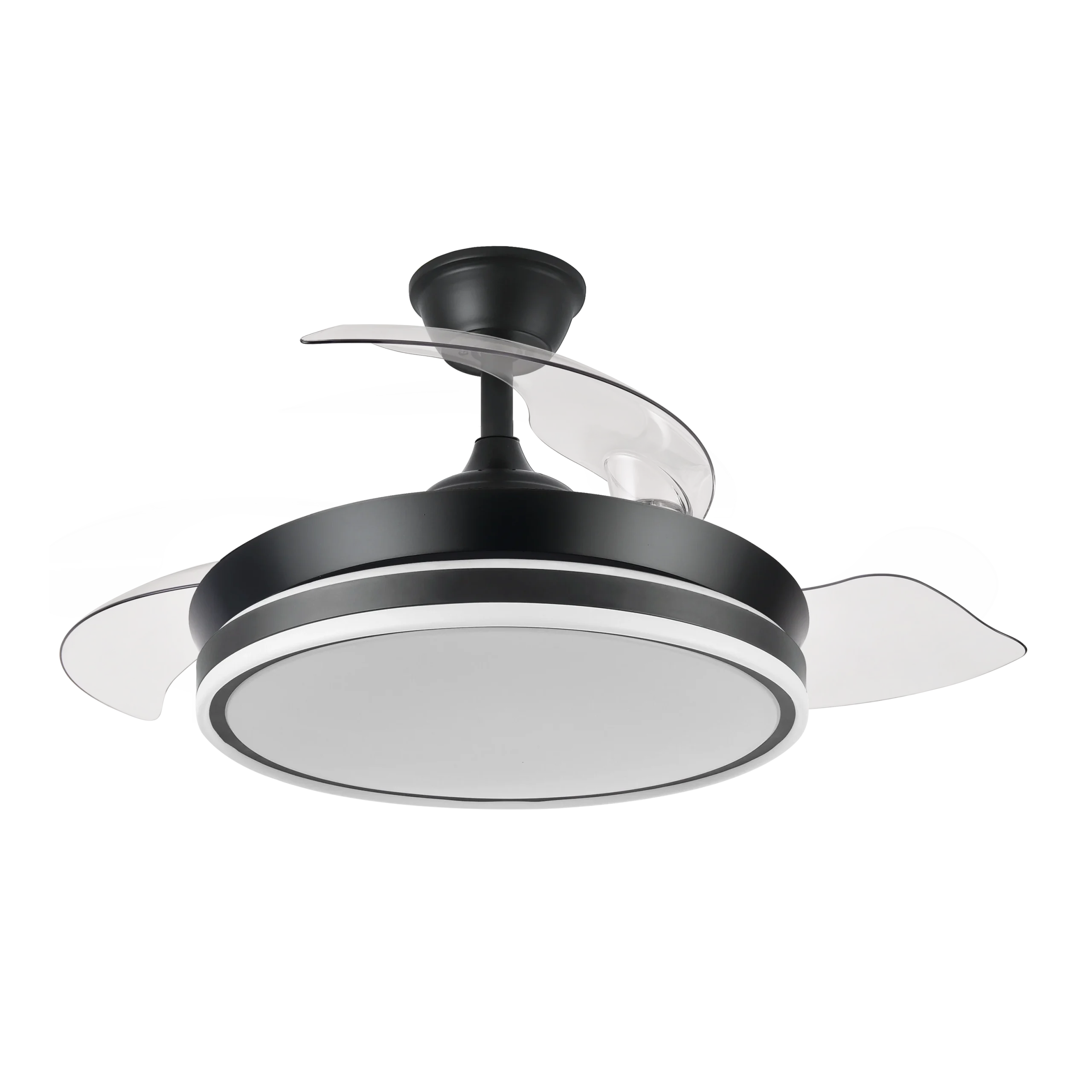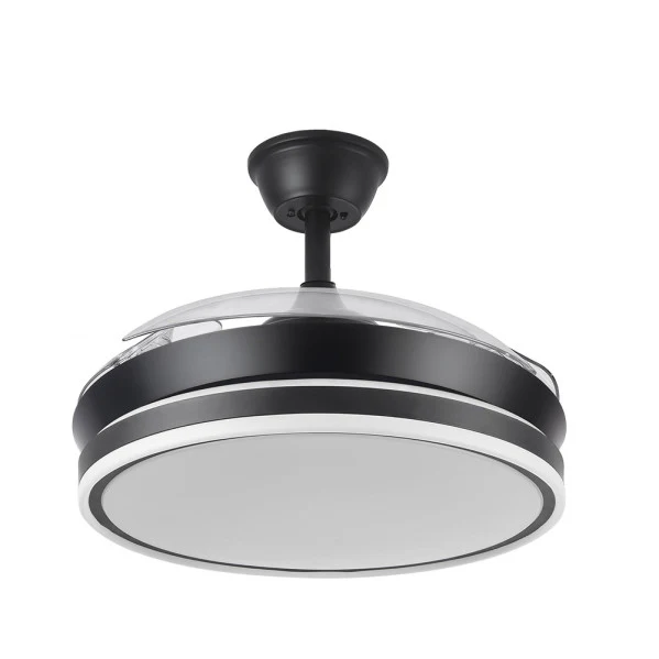 Ventilador DC Bayomo Negro 72w 6120lm 91d 3asp.desplegables 3000-4000-6000k Remoto, Temporizador, Memoria | Fabrilamp / Abrila