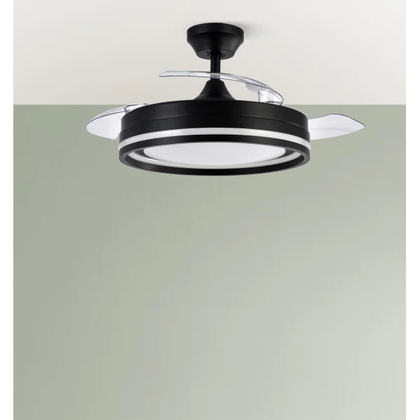 Ventilador de techo con luz LED Cerrato Negro de Abrila revoluciona tu hogar con su diseño innovador y funcionalidad versátil. Imagina un espacio fresco en verano y cálido en invierno, iluminado con 7200 lúmenes ajustables en tres tonos (3000K cálido, 4500K natural, 6000K frío), todo controlado por remoto con memoria y temporizador. Sus aspas desplegables de 107 cm generan hasta 9500 m³/h de flujo de aire silencioso (desde 37 dB), ideal para habitaciones grandes sin sacrificar estilo. Este ventilador de techo retráctil no solo ahorra energía con su motor DC de 72W, sino que te permite disfrutar de un confort total, eliminando el calor sofocante o la oscuridad, mientras reduces facturas eléctricas. Disponible en LUZGURU, la calidad premium de Abrila garantiza durabilidad y elegancia en cada detalle.