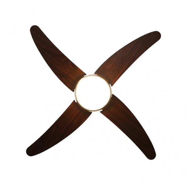 - Diseño en Metal, MDF y Cristal: Acabado premium en cuero y cerezo que se integra elegantemente en cualquier decoración, con aspas reversibles para uso estacional.